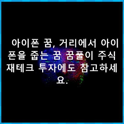 아이폰 꿈, 거리에서 아이폰을 줍는 꿈 꿈풀이 주식 재테크 투자에도 참고하세요. , 유사한 꿈 총정리 해드립니다.