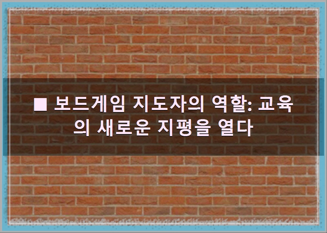 ■ 보드게임 지도자의 역할: 교육의 새로운 지평을 열다